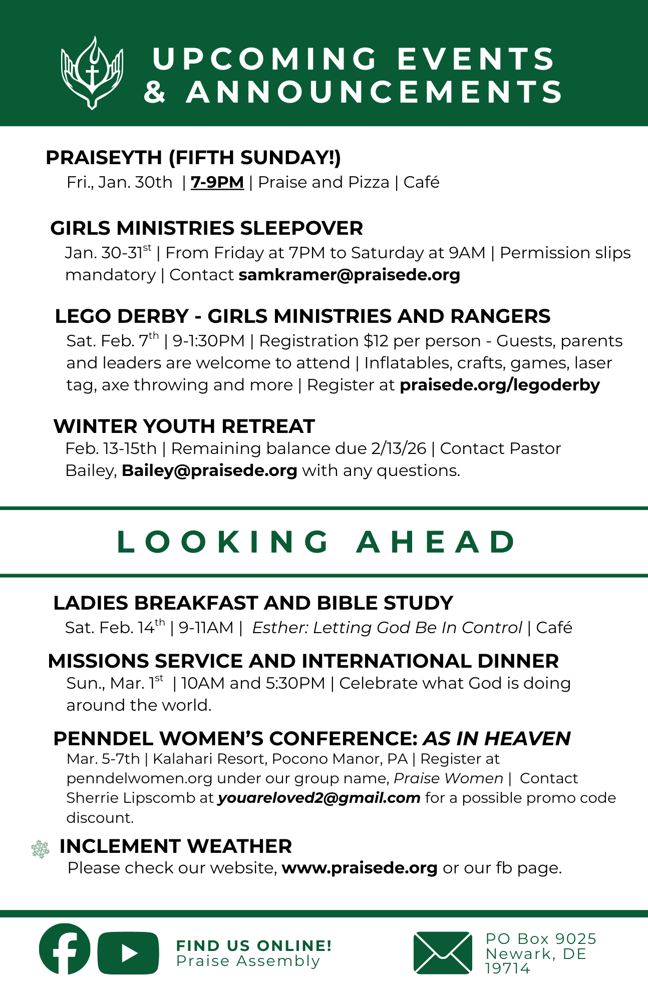 Stay up to date with the latest news and events taking place at Praise Assembly.